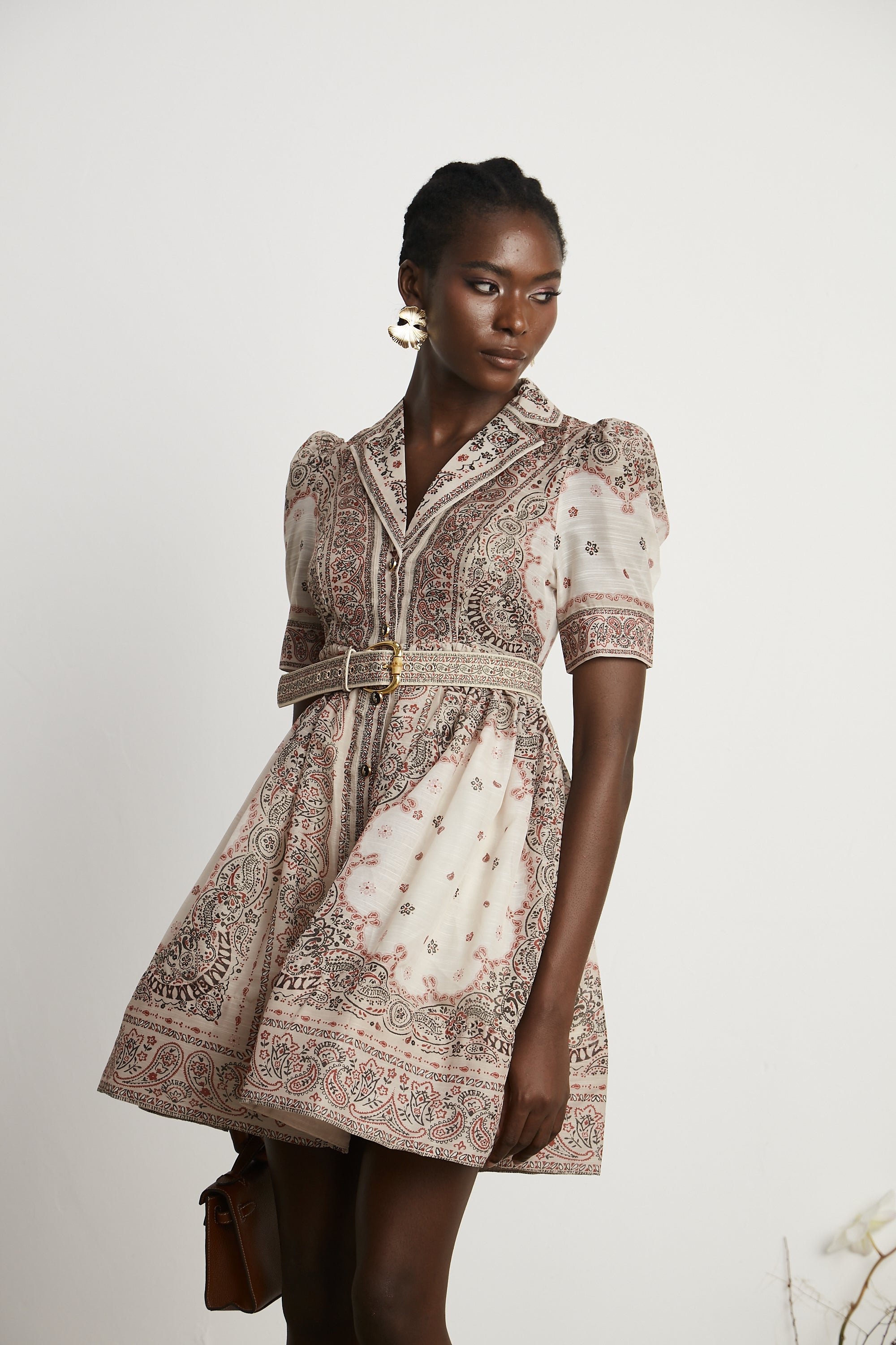 Angélique high-waisted pattern-printed mini dress