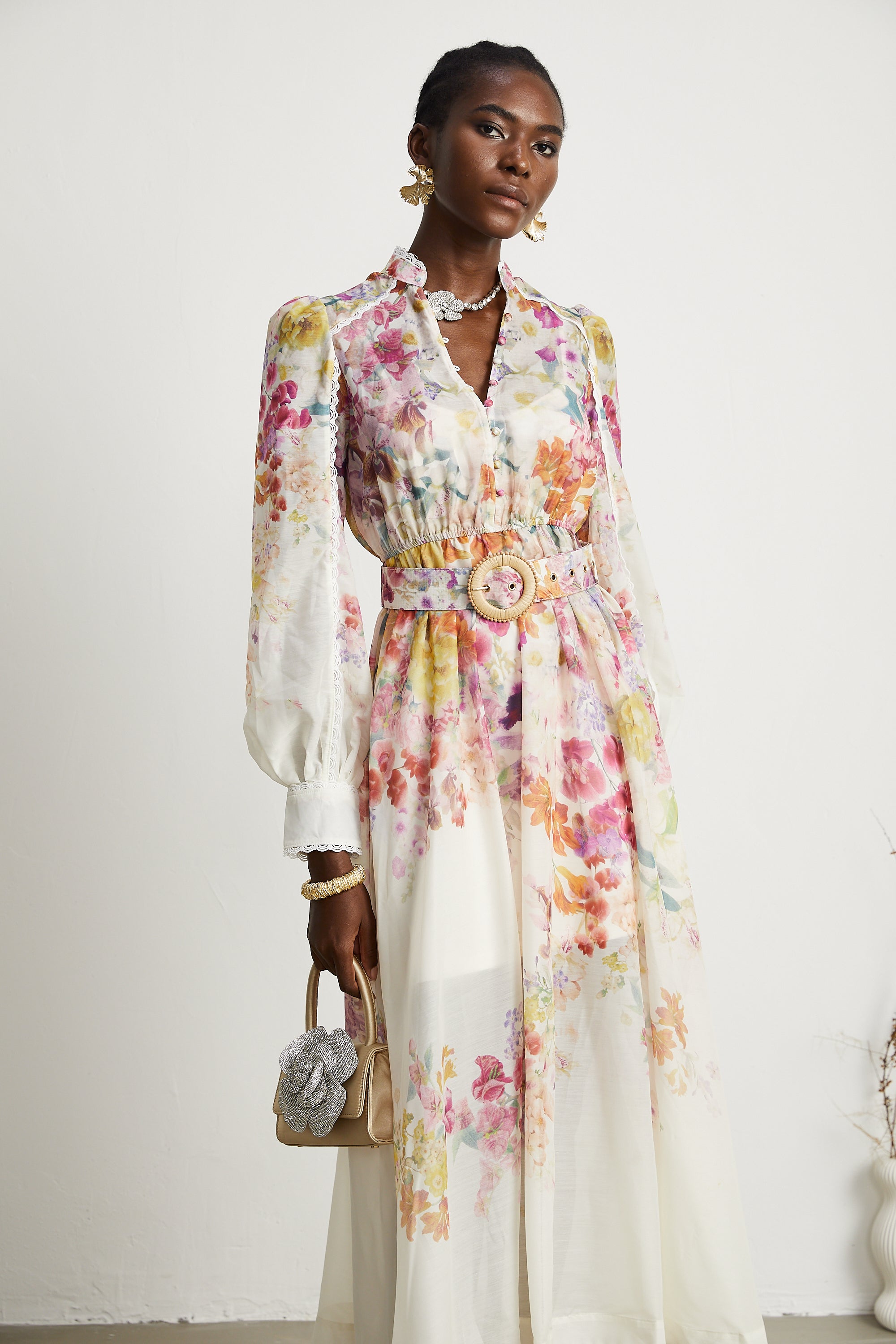 Roxane belted floral-print midi dress