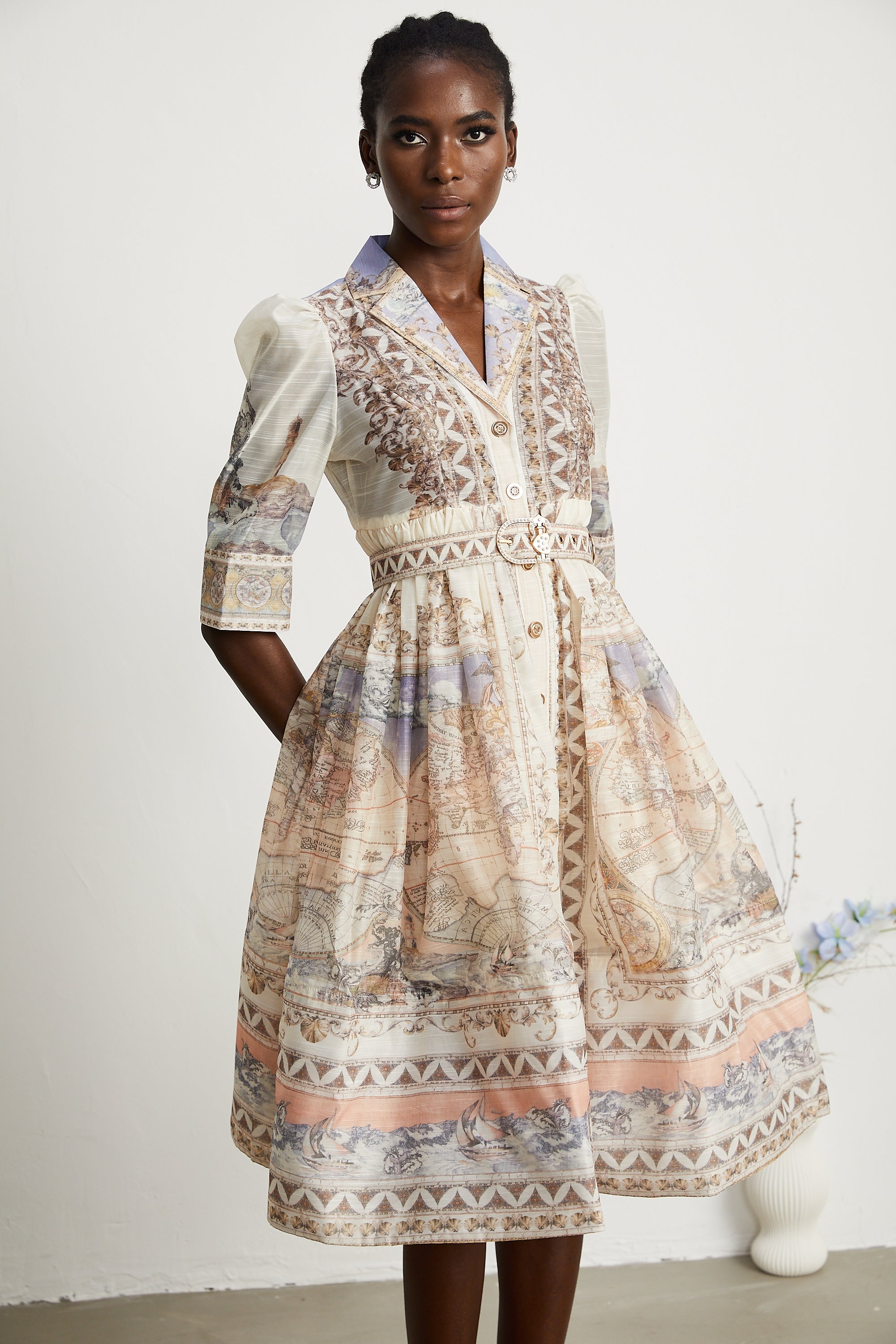 Thas classic-collar floral-print midi dress
