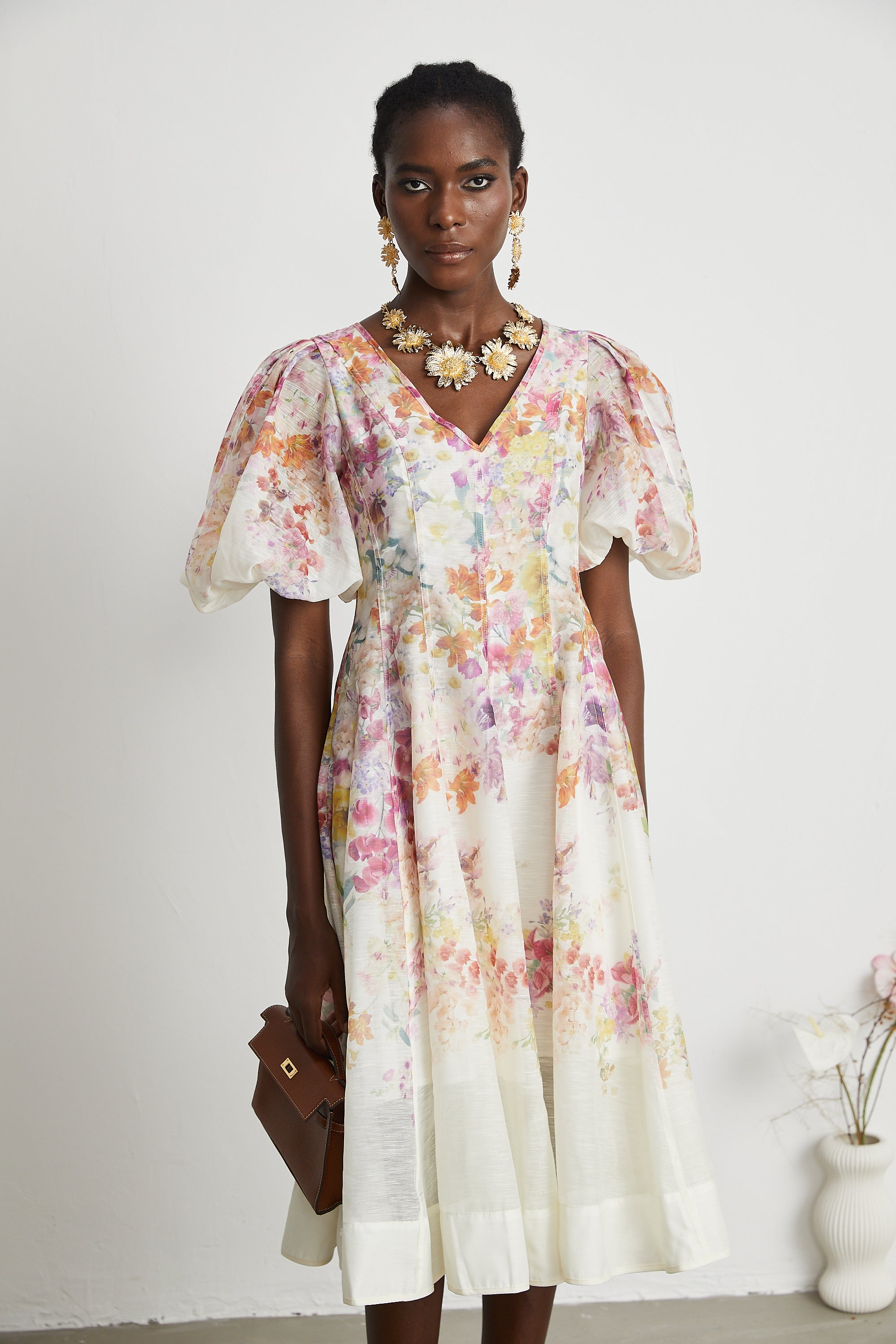 Isabeau floral-print puff-sleeve midi dress