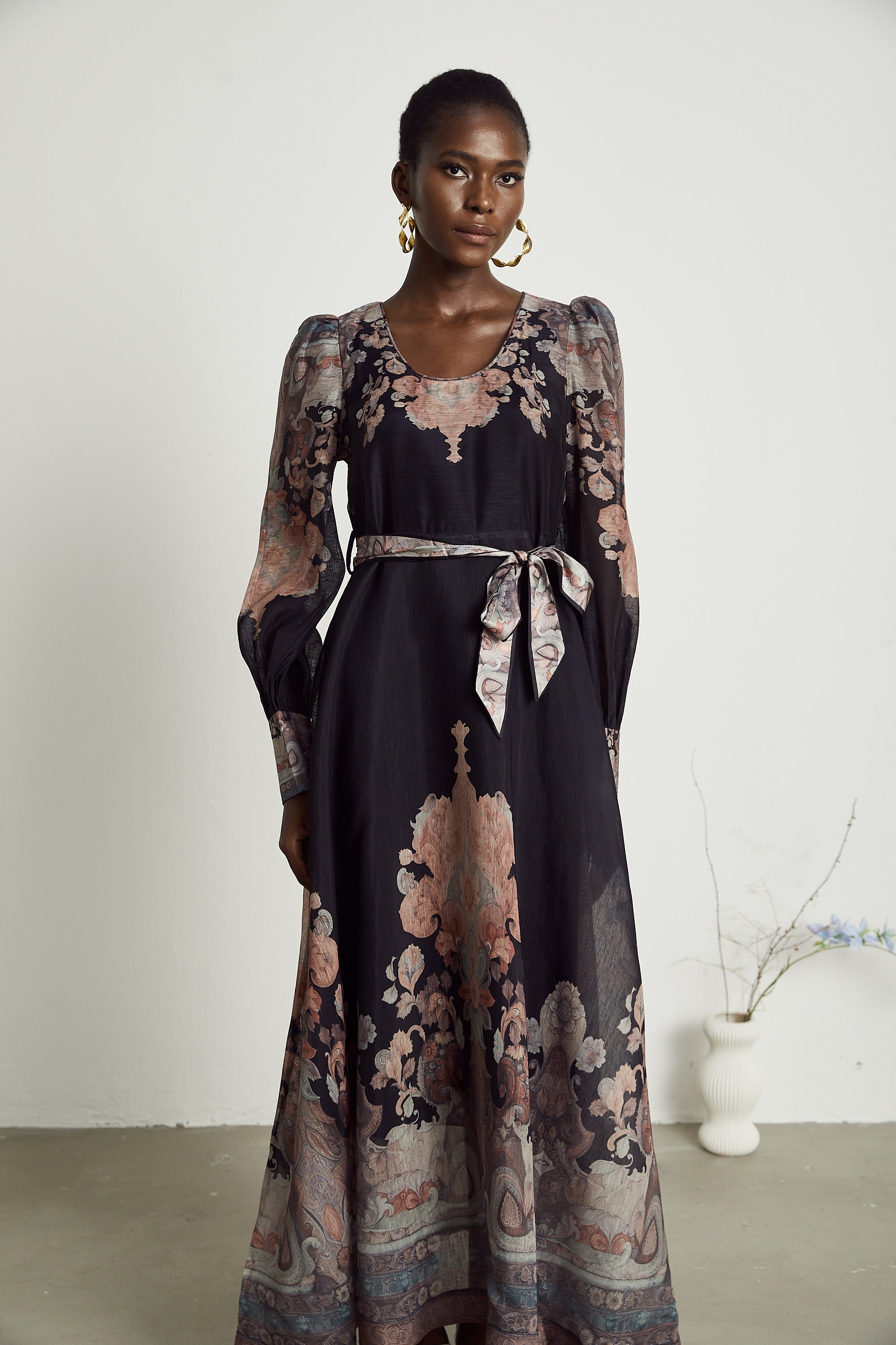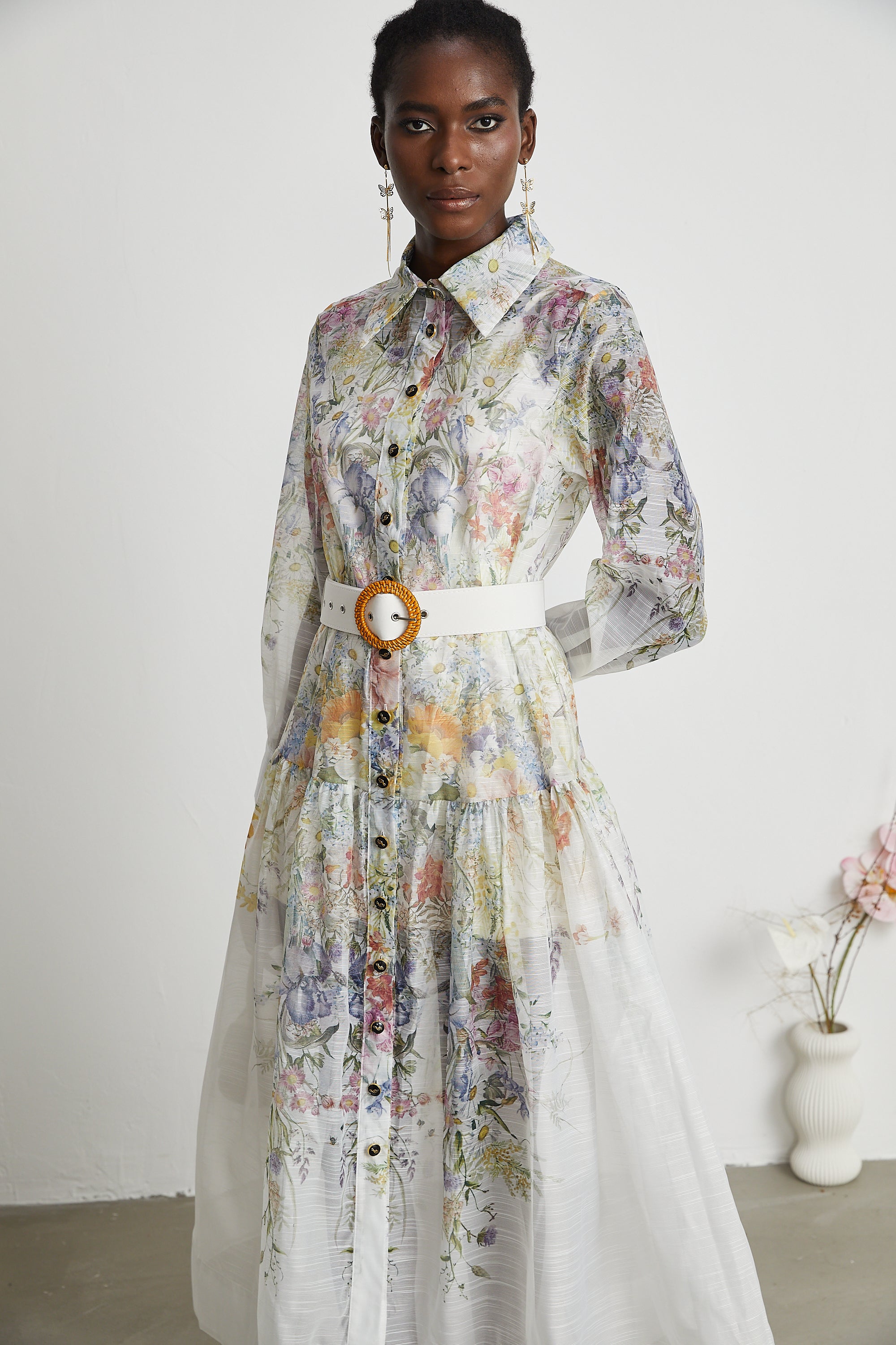 Odette floral-print belted midi dress