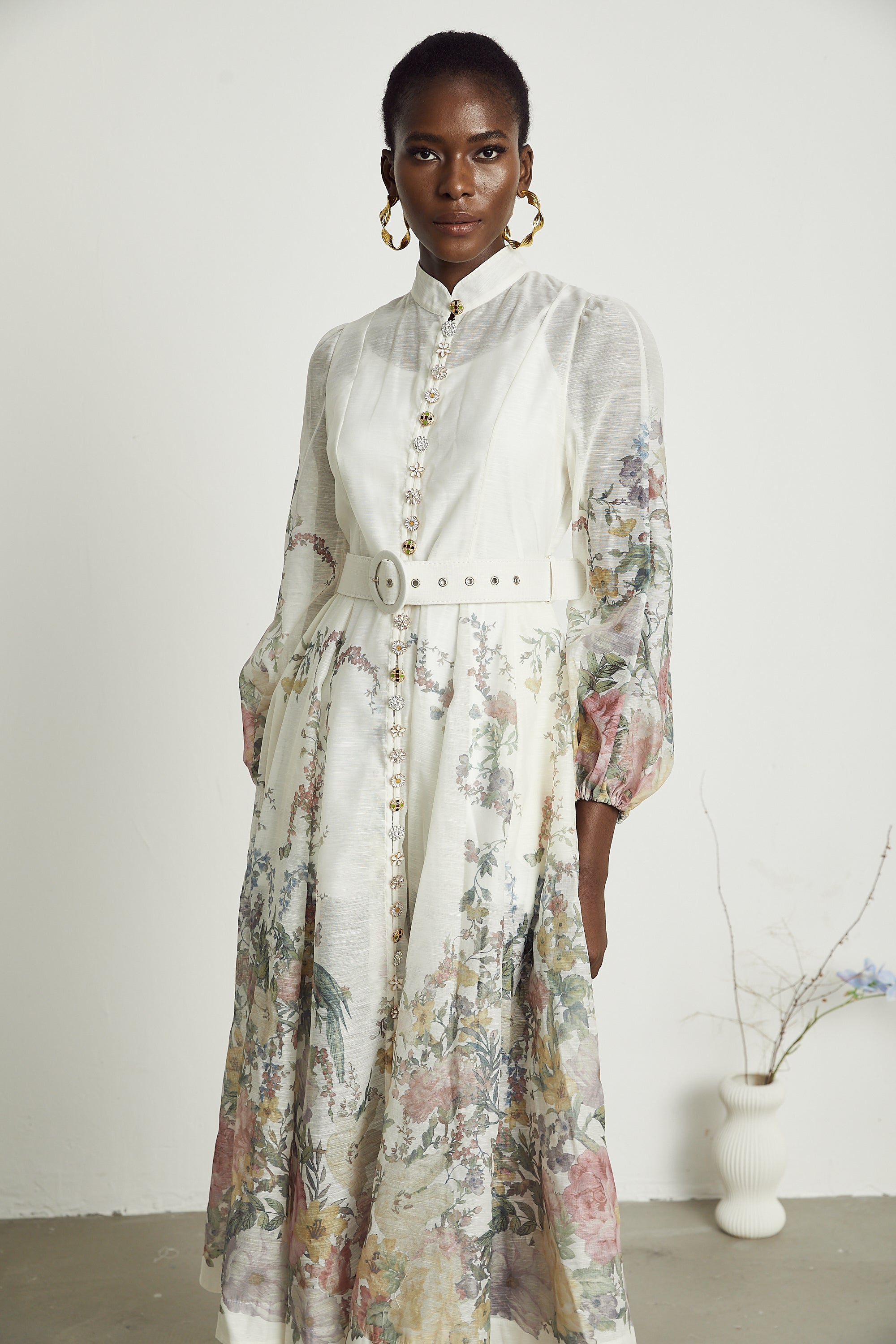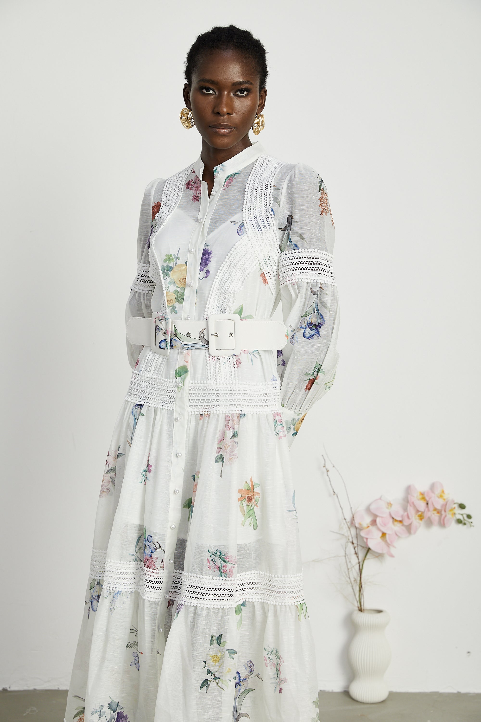 Thas white belted floral-print midi dress