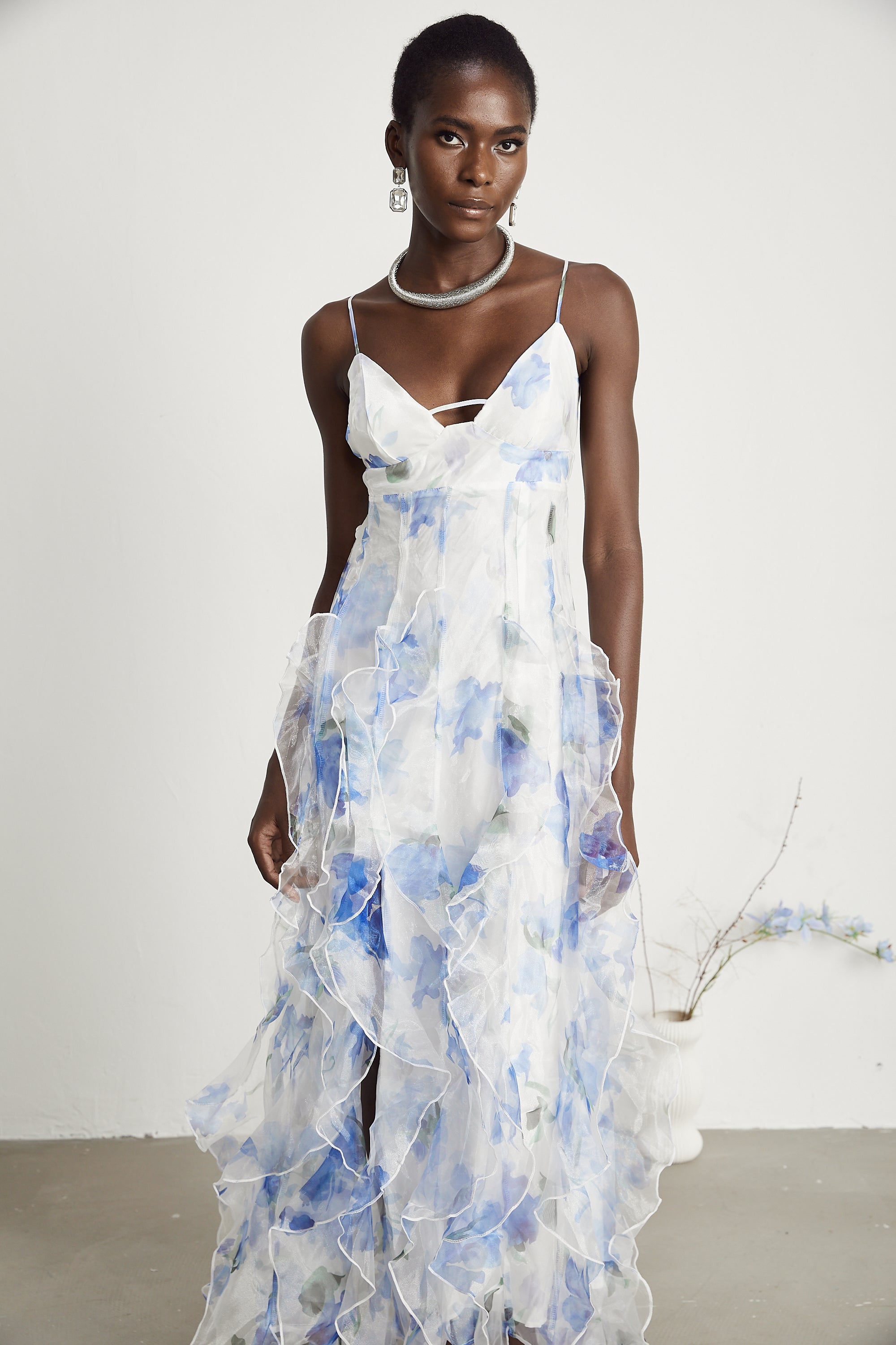 Capri floral-straps satin maxi dress