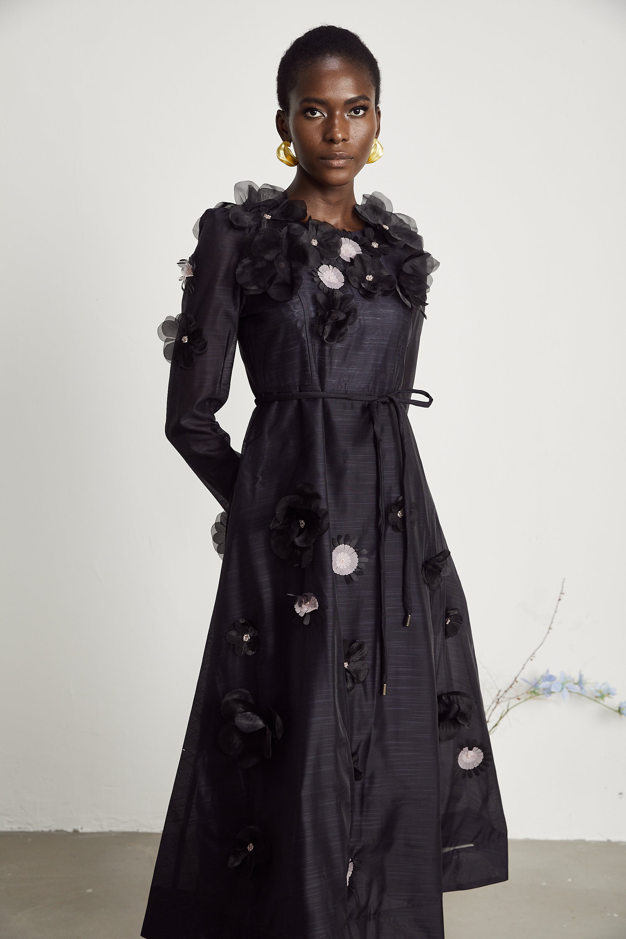 Galle black embellished long-sleeved dress