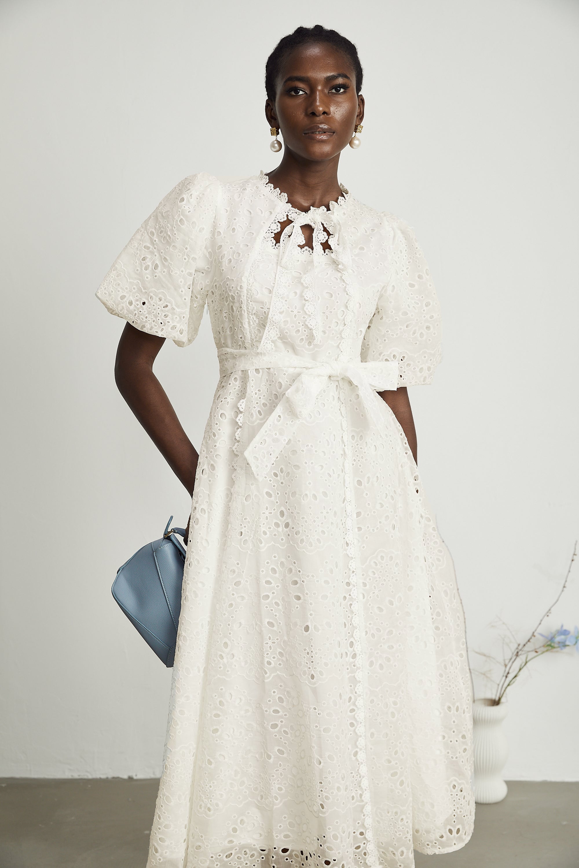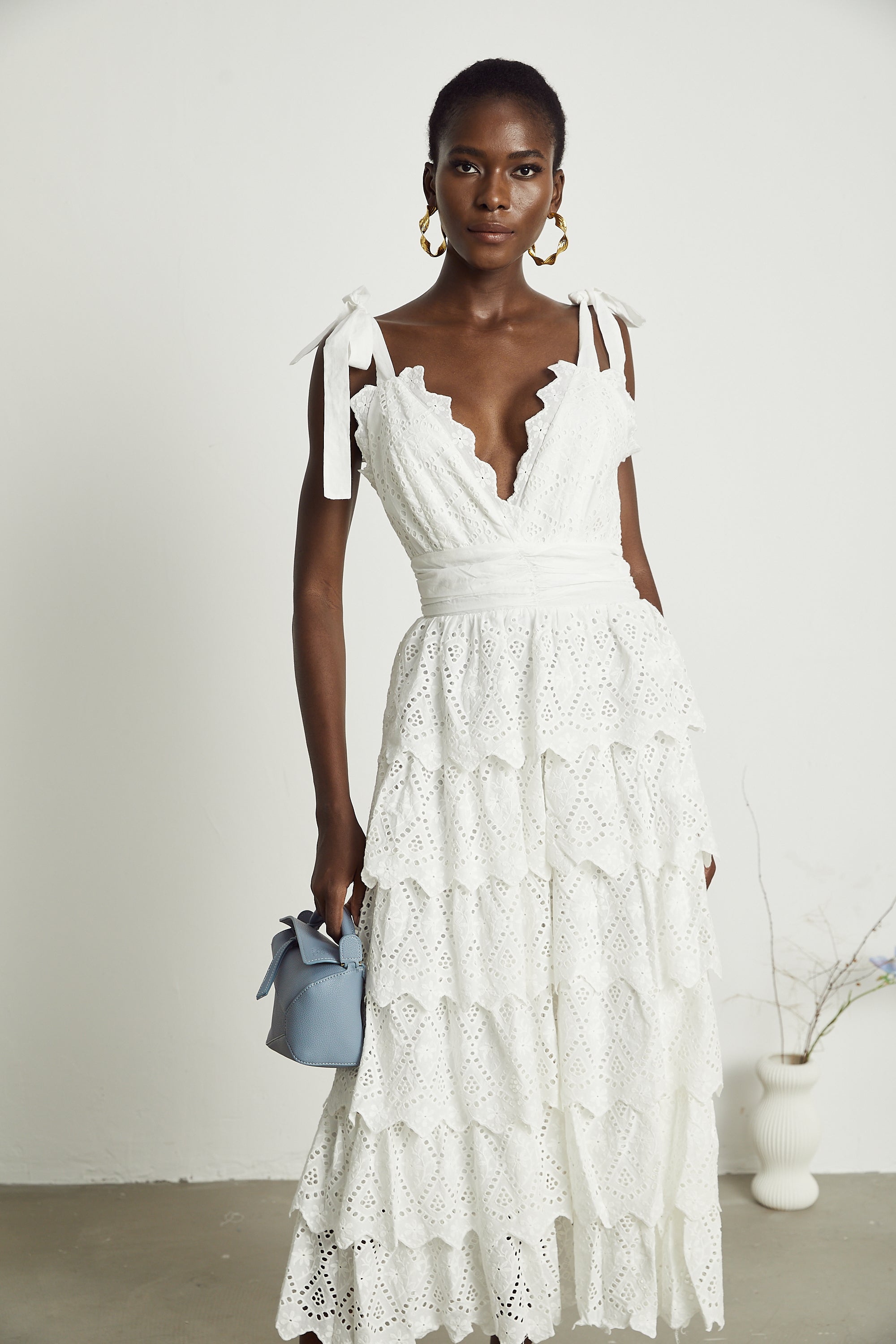 Saira tie-shoulder midi dress