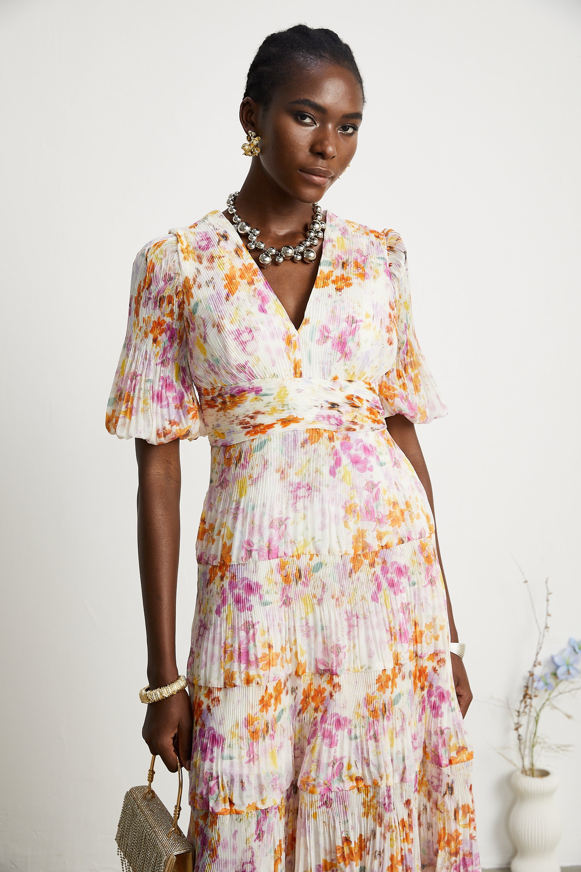 Solène pink tiered maxi dress