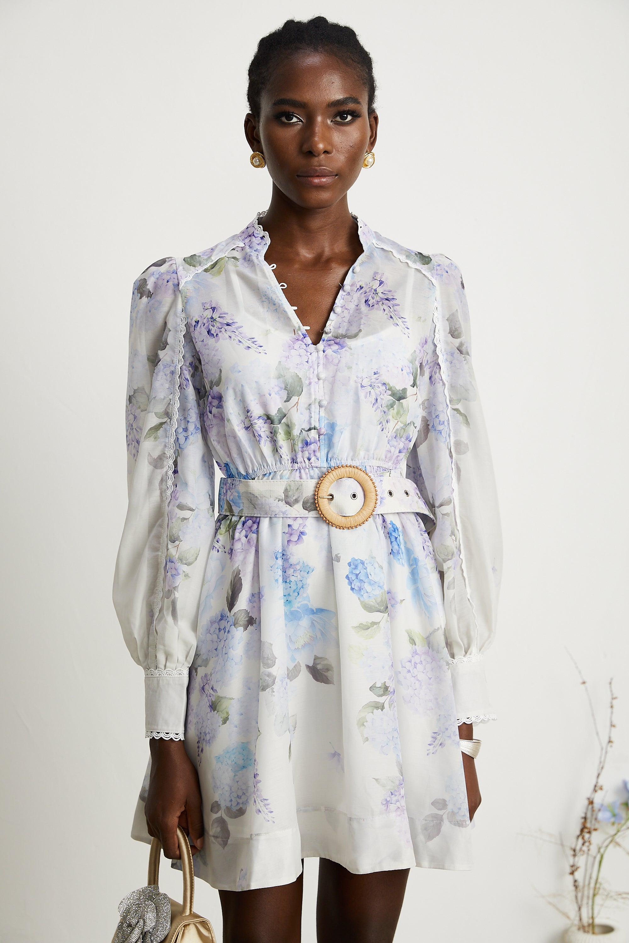 Claretta floral-print buttoned mini dress
