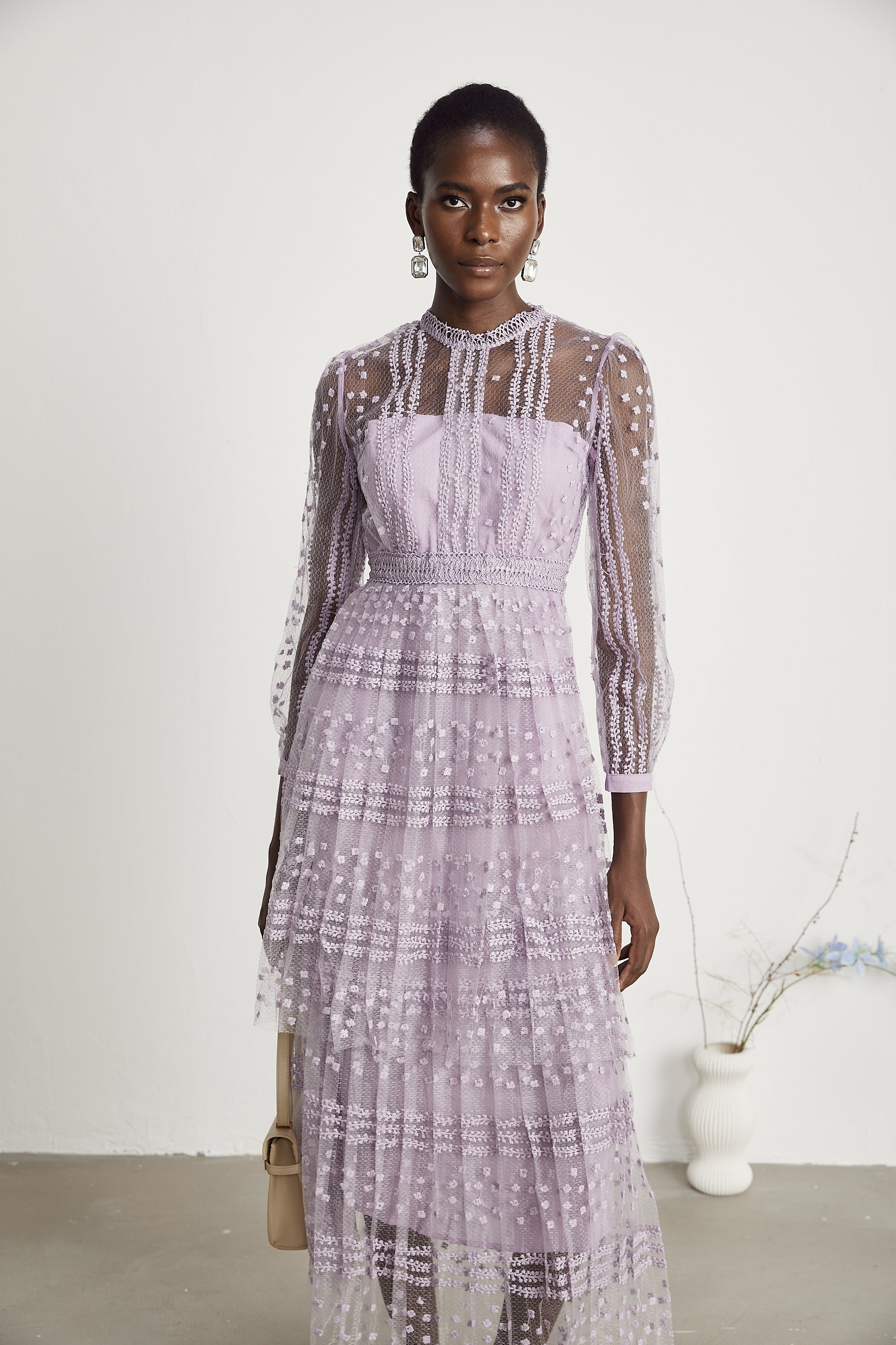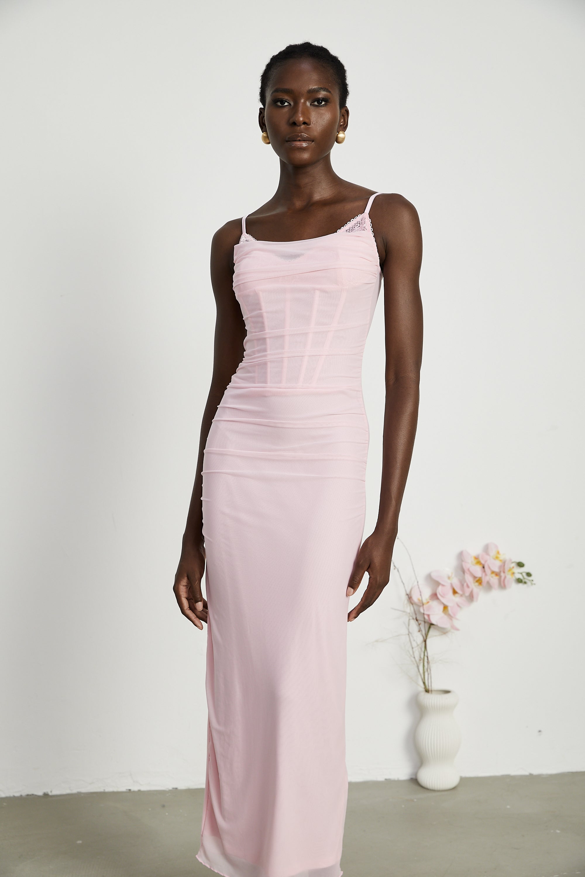 Lucia gathered mesh midi dress