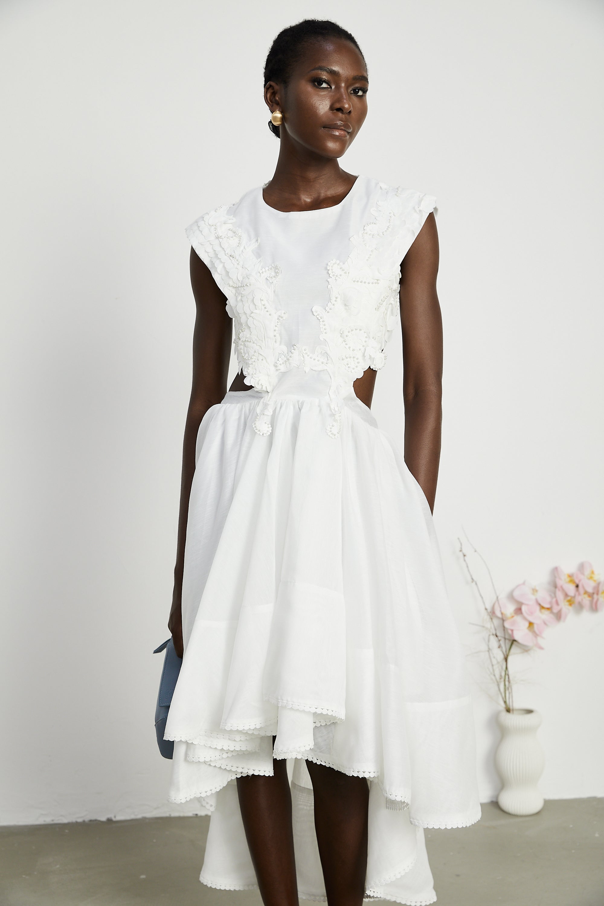 Carlotta faux-flower cut-out midi dress