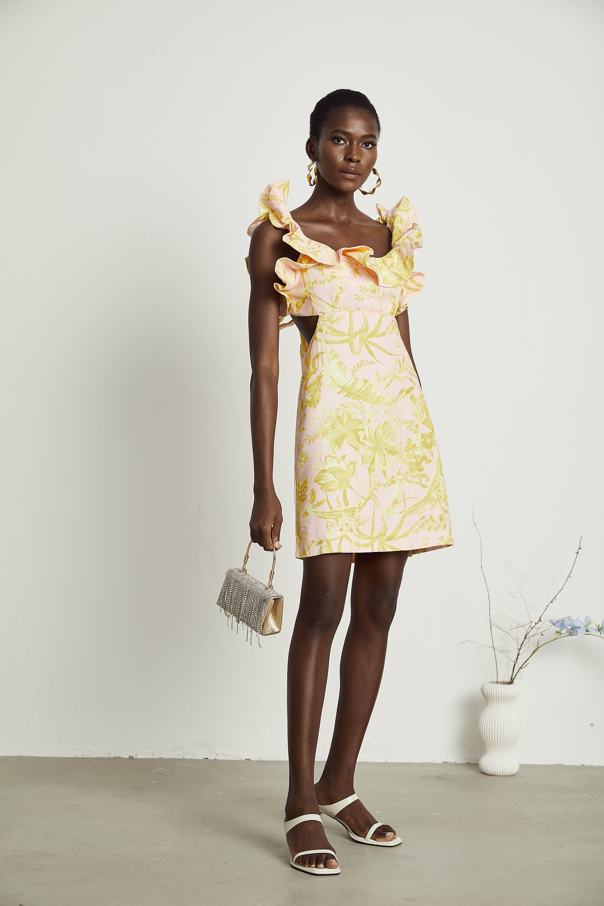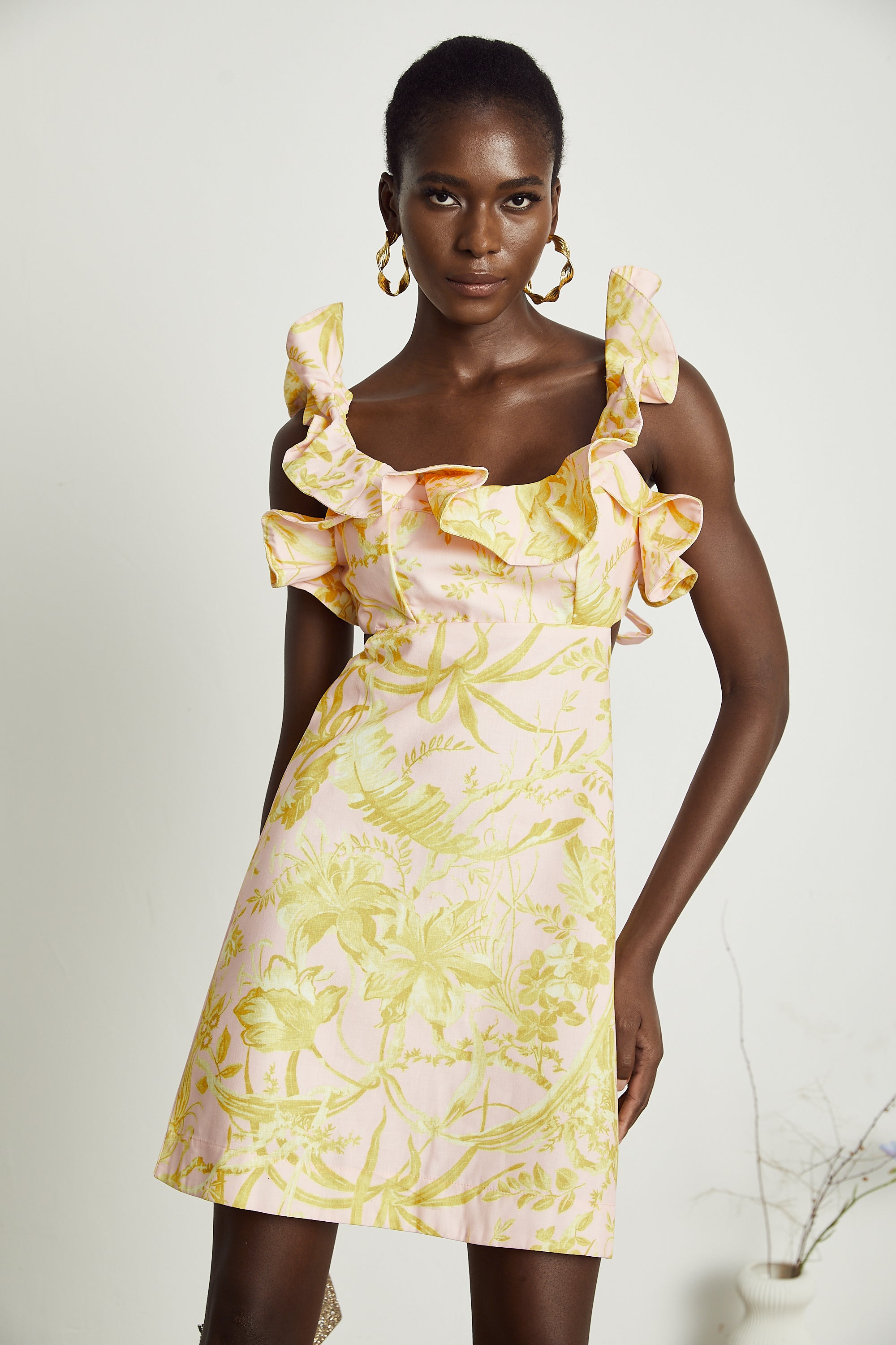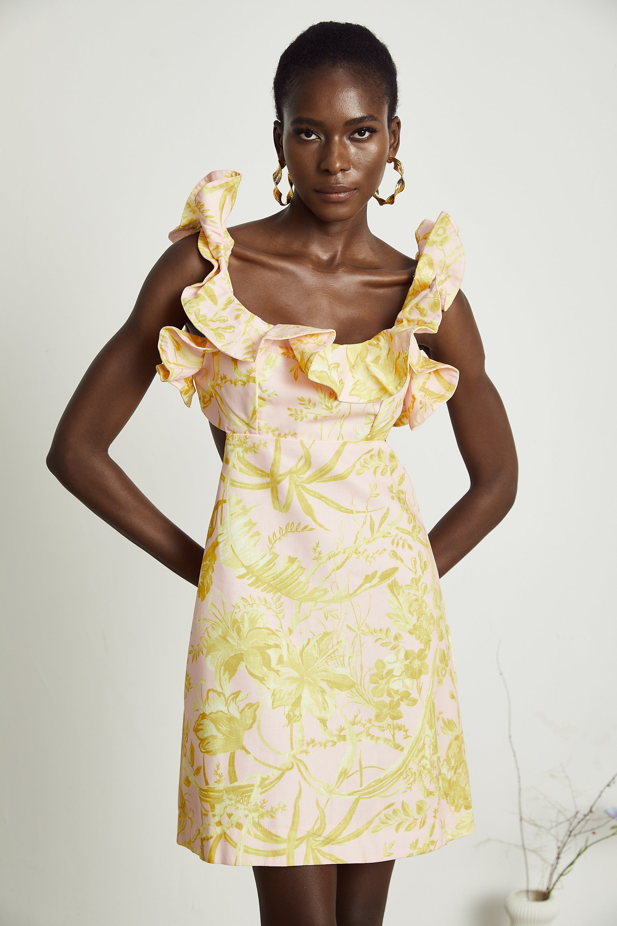 Flounced neckline detailing